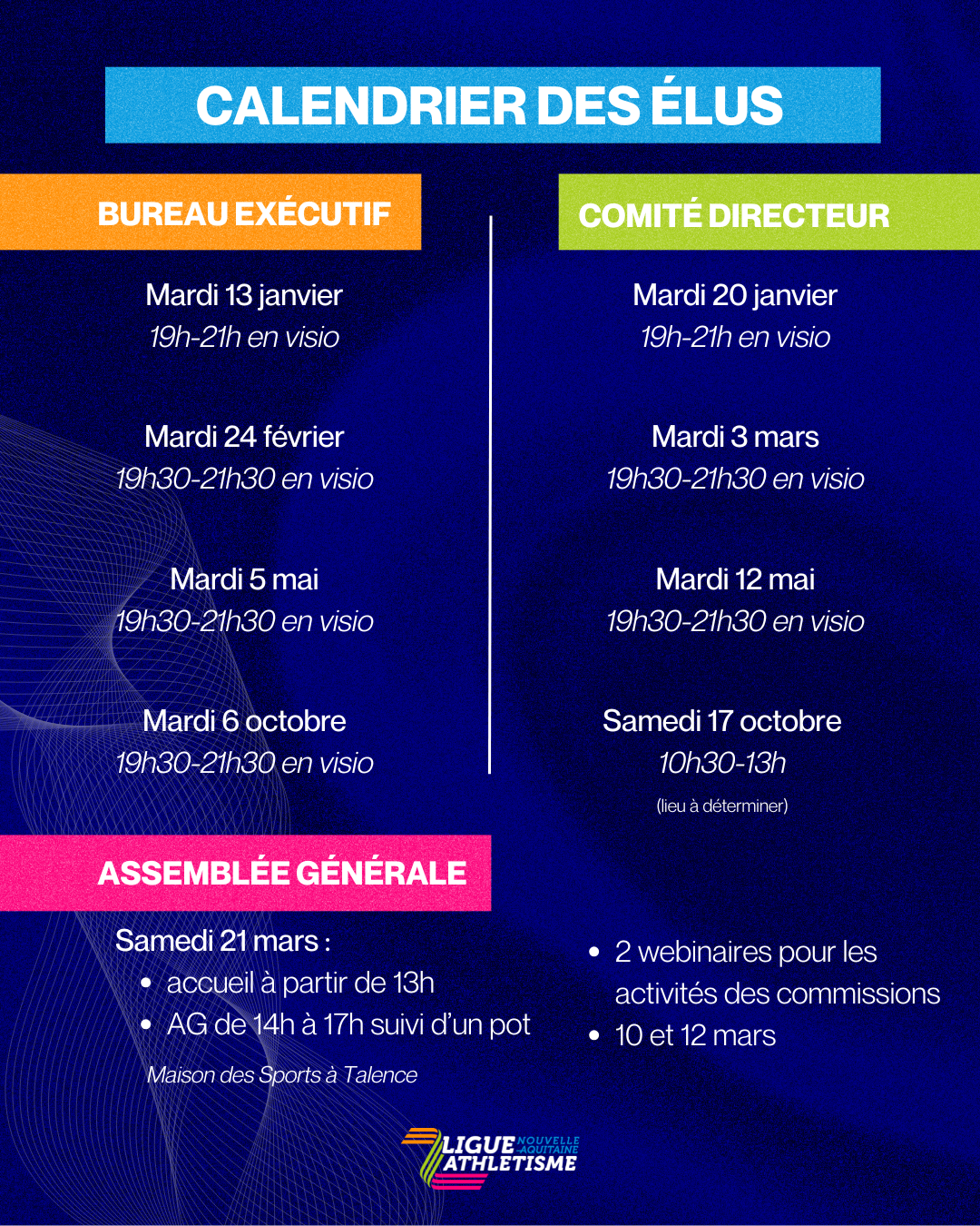 Découvrez sur cette page les différents déplacements du président Marc Le Mercier et son équipe en Nouvelle-Aquitaine. Cet agenda favorise la transparence et offre une vue d’ensemble des événements organisés par la Ligue.