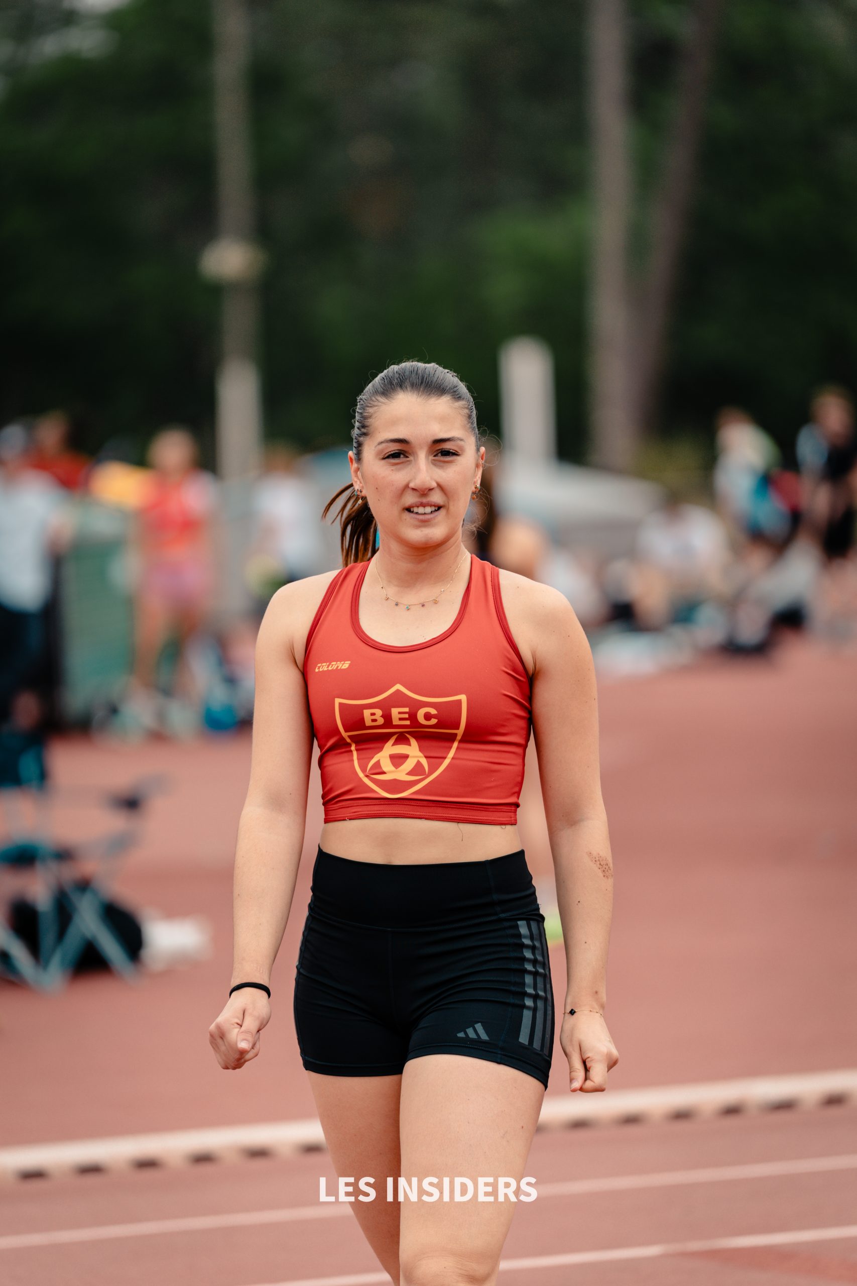 Melissandre BOVINET (Pays Basque Athlétisme) lance son engin de 3kg à 47m09 (42 points), Aythana BELLENGER (Pays Basque Athlétisme) réalise 32m51 au disque.