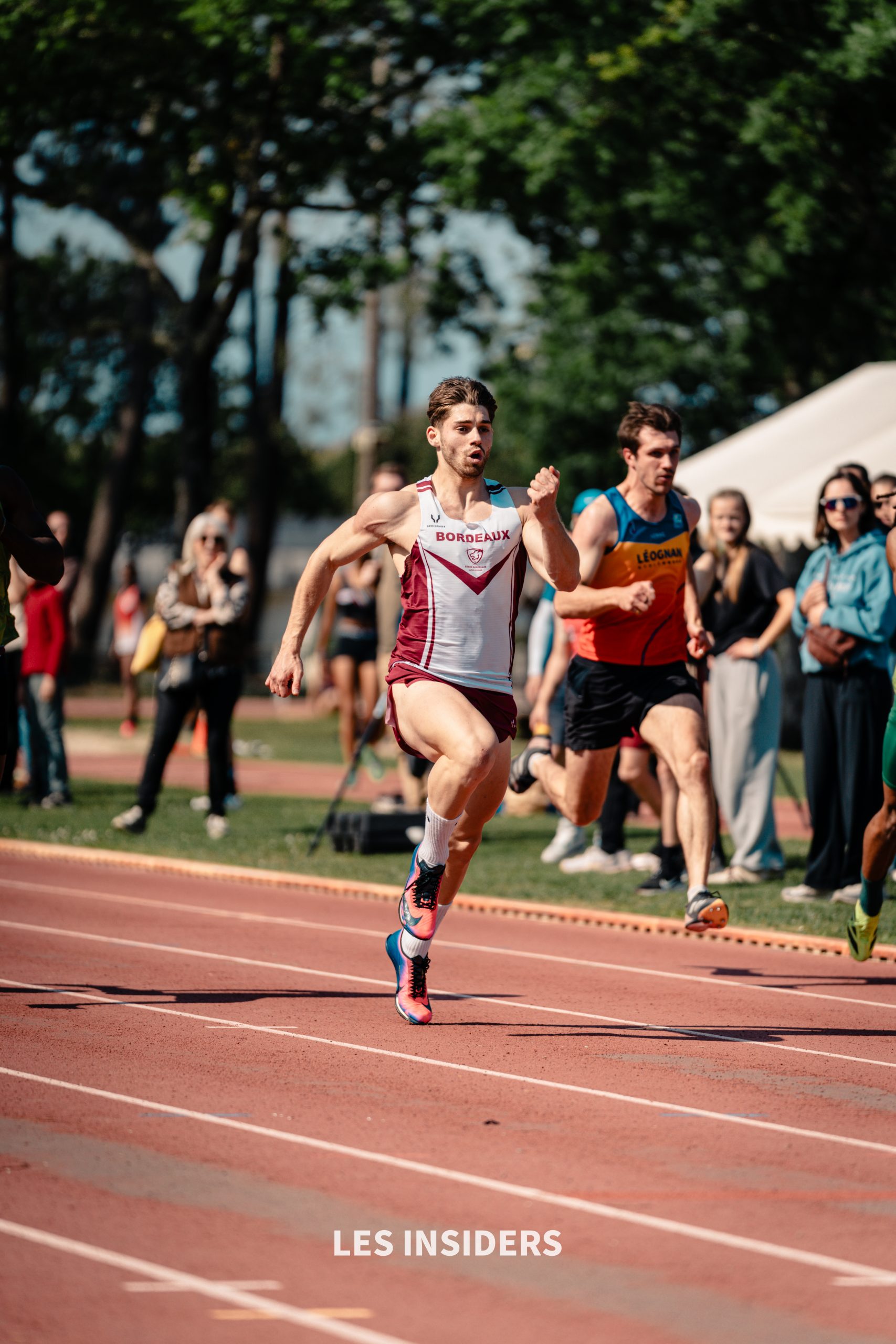 Chez les hommes, Noah CHARLES (Stade Bordelais Athlétisme) améliore son record personnel en début de saison estivale avec 10″60 (N2) sur 100 m, signant au passage la meilleure performance junior de la saison. Côme GONTHIER (Stade Bordelais Athlétisme) abaisse également son record à 10″70 (N3) et se classe 4e au bilan. Matteo BOURBEILLON (Bordeaux EC) améliore lui aussi sa marque avec 10″89 (N4). Sur 200 m, Mathis SABLEAUX (Stade Bordelais Athlétisme) bat son record en 22″15 (N4). Alix LASCAUX (US Talence), plus habitué aux distances courtes, réalise 49″60 (N4) sur 400 m. Sur les haies, Lohan VERNET (Stade Bordelais Athlétisme) effectue sa rentrée en 15″03 (N4).