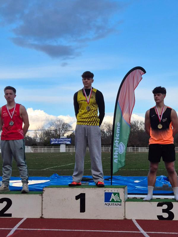 Chez les hommes, Yossef HAMDAOUI (Grand Angoulême Athlétisme) prend la 6e place de la finale du 60 m haies. Il améliore toutefois sa marque en demi-finale avec un solide 7’’86 (N3). Son coéquipier Nathan MARTIN GUICHETEAU, auteur d’un 8’’10 (N4), et Tomas LE FEUVRE (Entente Bruges St Bruno), qui avait pourtant signé un record personnel en séries en 8’’06 (N4), ne parviennent pas à accéder à la finale.