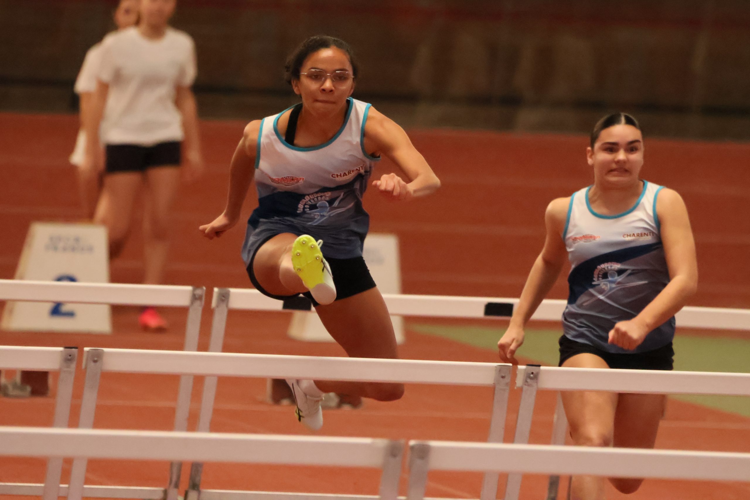 Sur 50 m haies, Albane DUPOUY LACAM (Stade Langonnais Athlétisme) améliore son record personnel en finale avec 8″48 (40 points), tandis qu’Elena VIVET (Pays Basque Athlétisme) explose le sien en série en 8″39 (41 points). Apolline BADIA (Entente Poitiers Athlétisme 86) améliore également son record personnel en série avec 8″51 (40 points), mais ne parvient pas à confirmer en finale.