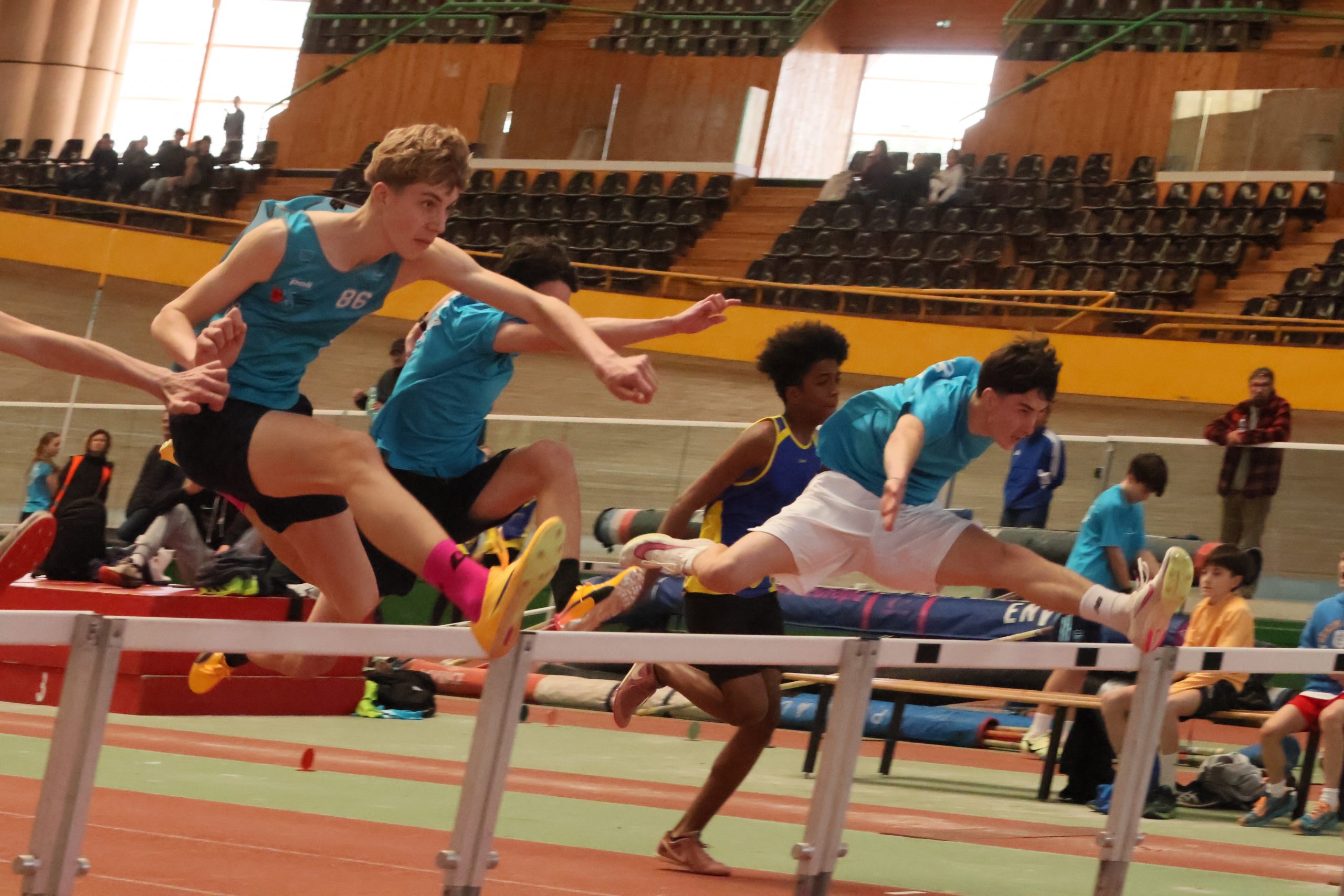 Sur 50 m haies, Louis RICHEZ (Grand Angoulême Athlétisme) bat son record personnel en passant sous la barre des 8 secondes avec 7″98 (42 points). Hugo MAILLOT (E.A.P. Châtelleraudais) améliore également son record avec un chrono de 8″00 (41 points).